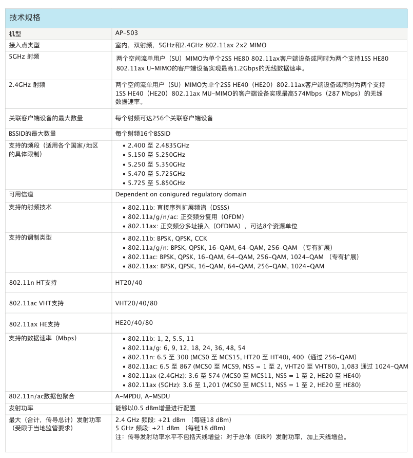 室内中密度Wi-Fi 6接入点AP-503提供兼具高成本效益与高性能的连接,可以帮助各类组织应对因移动使用需求提高、转向云或物联网环境而带来的设备增长挑战。503 系列的实际聚合数据速率高达 1.775 Gbps(HE80/HE40),可以为学校、中型办公室和零售卖场等中等密度的场地和工作场所提供所需的连接速度和可靠性。